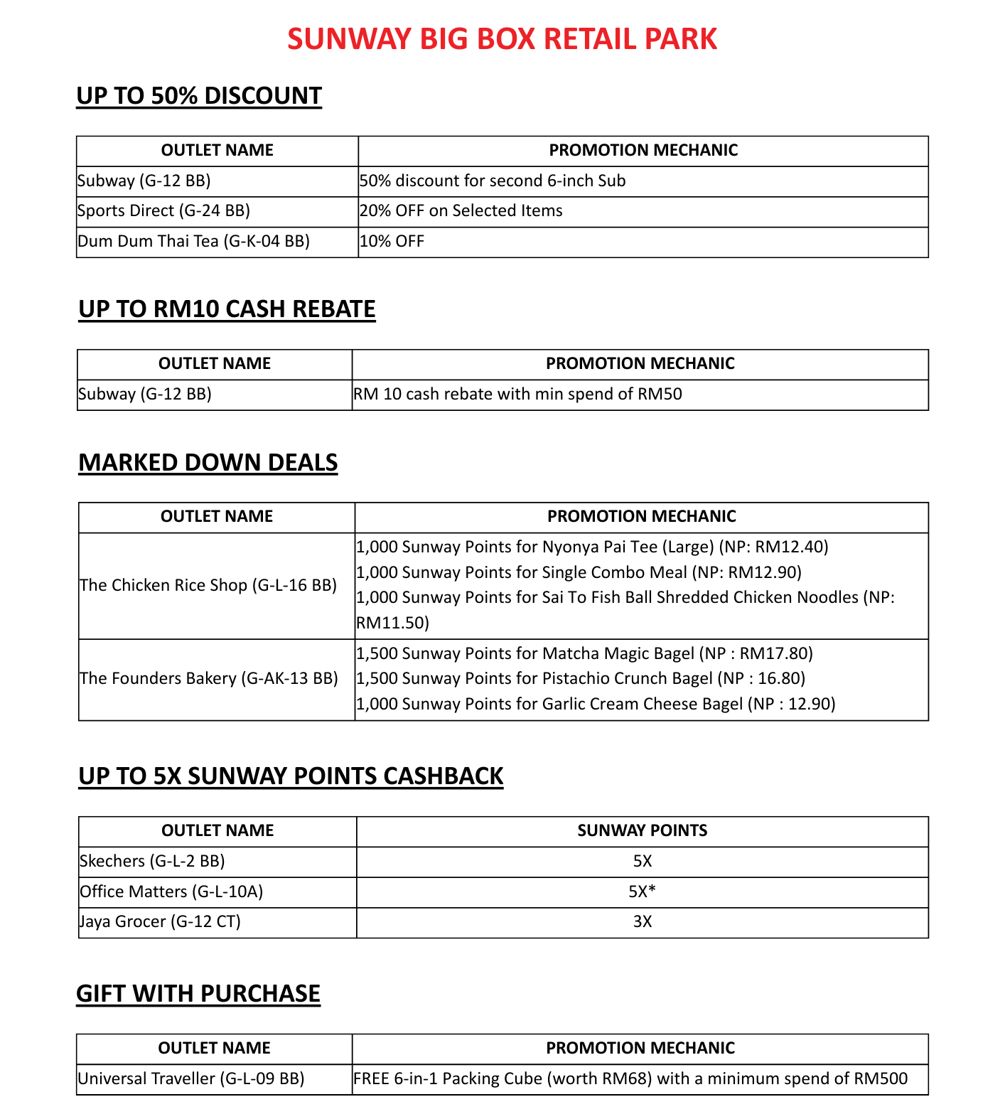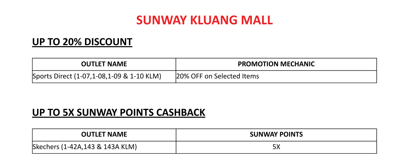 ENJOY EXCLUSIVE DEALS at Sunway Big Box Retail Park and Sunway Kluang Mall, during our biggest campaign of the year, starting from 12 September 2025 until 26 October 2025!